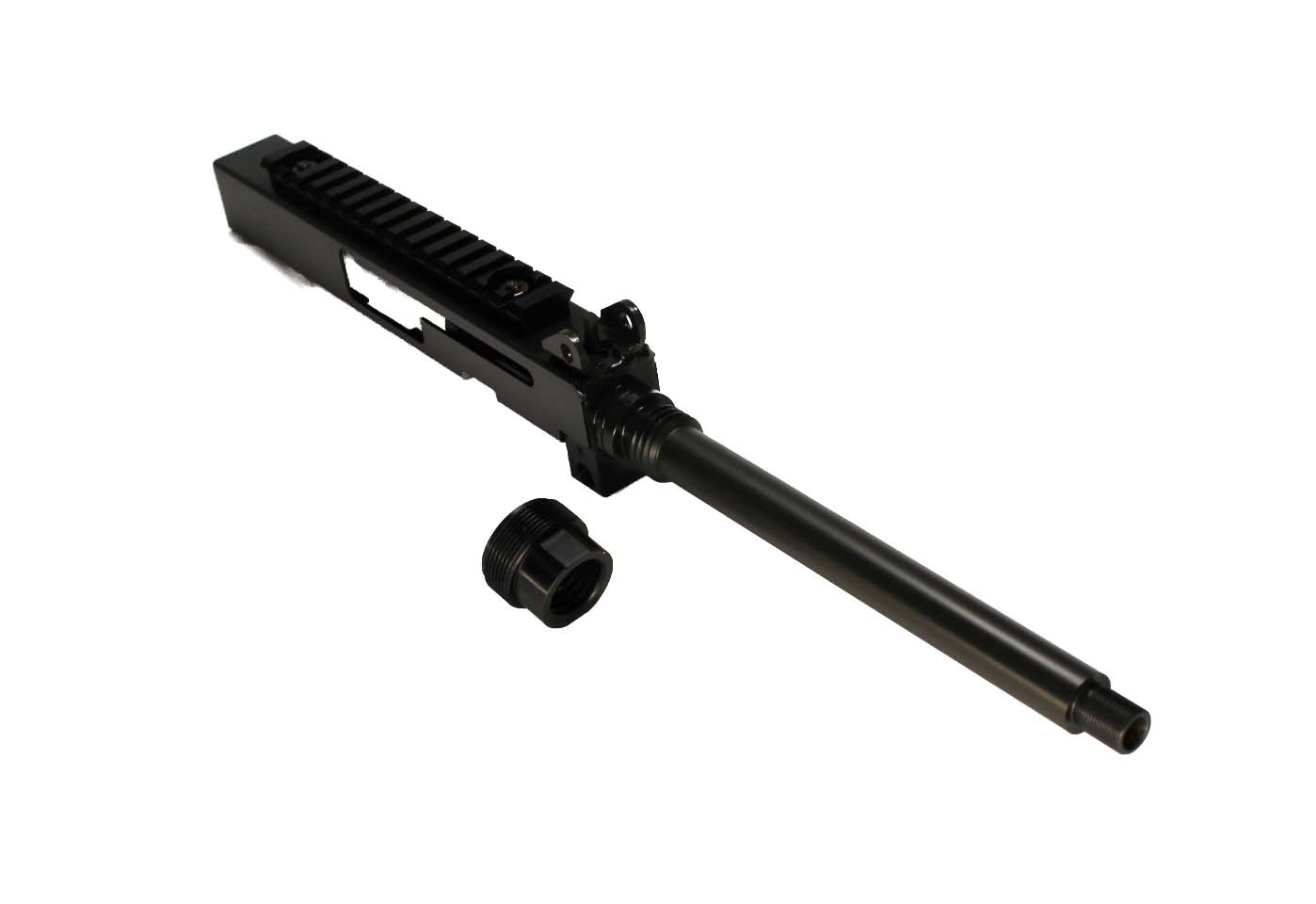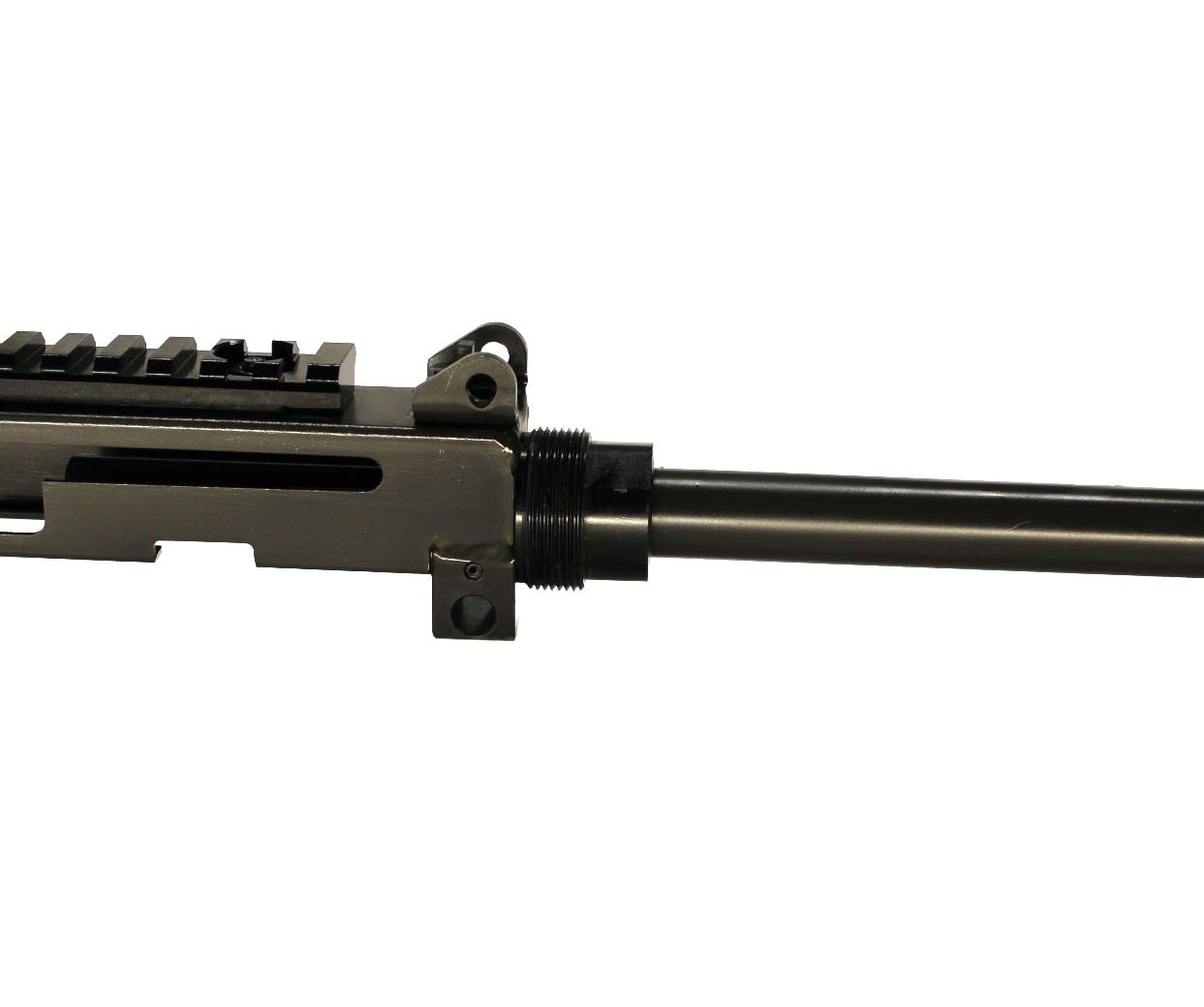 This component is an adapter for an AR-15 handguard. The internal threading is 3/4″-10, designed to fit VMAC9 rifle barrels and most MAC-11–style firearms. The external threading is 1-1/4″-18 UNEF used by the vast majority of standard AR-15 manufacturers.