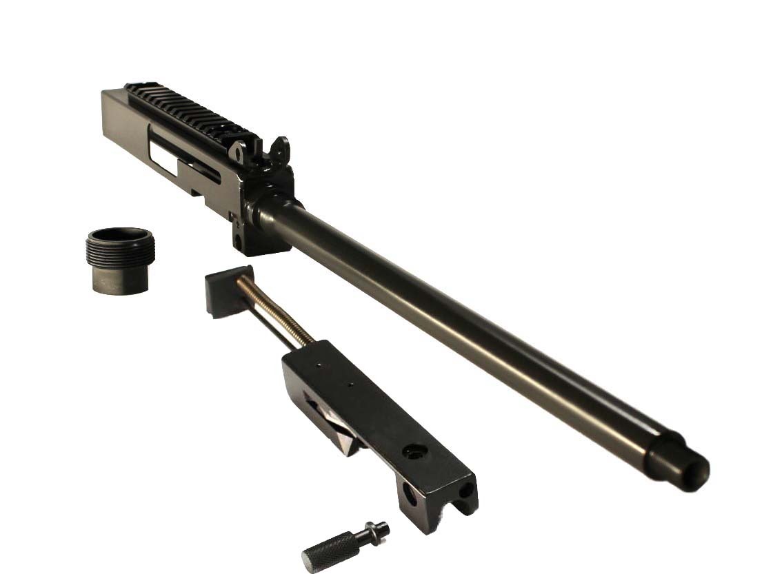 This is a FACTORY NEW Semi-Auto VMAC9 Side Cocking Rifle Upper Kit manufactured by Velocity Firearms.  This kit includes everything that is pictured, (Upper, Bolt Assembly, Side Cocking Handle and AR Hand Guard Adapter).  The AR hand guard adapter allows you to build your upper with any AR-15 free float handguard.   All parts have a manganese phosphate finished IAW 5.3.1.2 of Mil-STD-171, the U.S. governments recommended protective finish for steel.    These uppers use the blow-back unlocked bolt design.