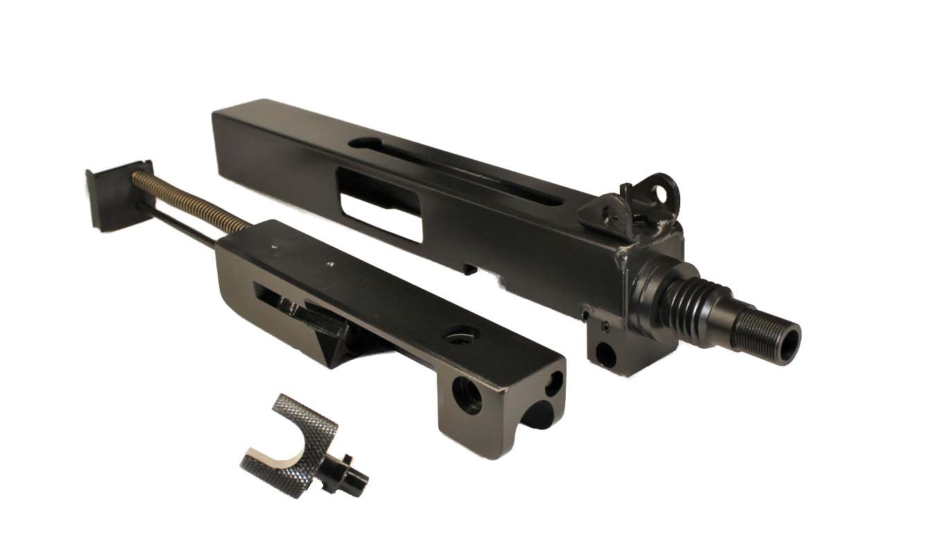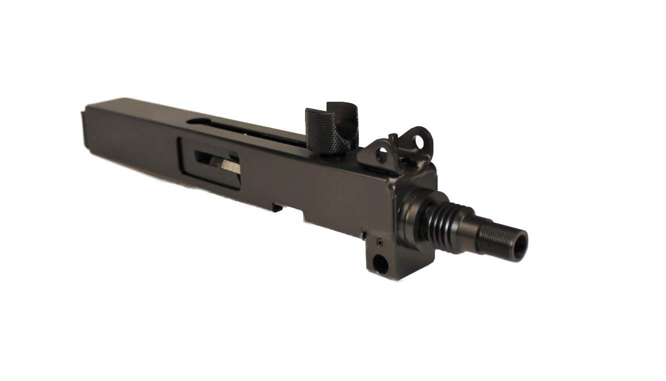 The upper operates on a simple and reliable blowback, unlocked-bolt system. The barrel is threaded ¾ x 10 and ½ x 28, providing compatibility with select aftermarket accessories.
